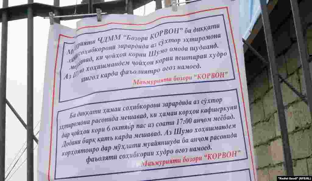Бо гузашти чиҳил рӯз аз сӯхтори азим дар "Корвон", бузургтарин бозори Тоҷикистон, ҳамоно қисмати яклухтфурӯшии он ба таври пурра ба фаъолият шурӯъ накардааст. Танҳо баъзе дӯконҳое ба кор пардохтаанд, ки зоҳиран дубора тармиму бозсозӣ шудаанд.