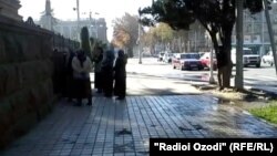 Ин гурӯҳи ҳудудан 20-нафарӣ дар назди Кохи президент ҷамъ шудаанд ва иддао доранд, ки 40 сол боз дар Корхонаи нассоҷии тоҷик кор мекунанд, вале ҳанӯз ҳам ҳақи хусусӣ кардани манзилҳои замони Шӯравиро дарёфт накардаанд.