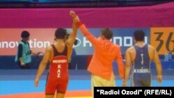 Намояндаи охирини Тоҷикистон дар риштаи гуштии озод Азамат Сӯфиев дар вазни то 74 кг дар нахустин қувваомоияш бар Тун Зав Минт (Мянмар) бо ҳисоби 4-0 ғалаба кард, вале баъдан аз Дайсуке Шимада (Ҷопон) бо ҳисоби 0-4 шикаст хӯрд.