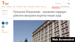 Радиои Озодӣ мегӯяд, ном ва мақоми духтари раиси ҷумҳур дар рӯйхати расмии кормандони Вазорати умури хориҷӣ дар вебсайти ин ниҳод чоп шуда, манобеи дигар ҳам хабарро тасдиқ карданд. Баъди нашри ин иттилоъ мақомот ба хабарнигорони Радиои Озодӣ дар Душанбе панҷ дақиқа мӯҳлат додаанд, то хабарро ҳазф кунанд, вагарна муҷаввизи фаъолиятро аз даст хоҳанд дод. "Аккредитатсияи" журналистон баъди он қатъ карда шуд, ки Радиои Озодӣ "манобеи хабарашро тафтиш карда ва тасмим гирифт, мақоларо нигоҳ дорад".