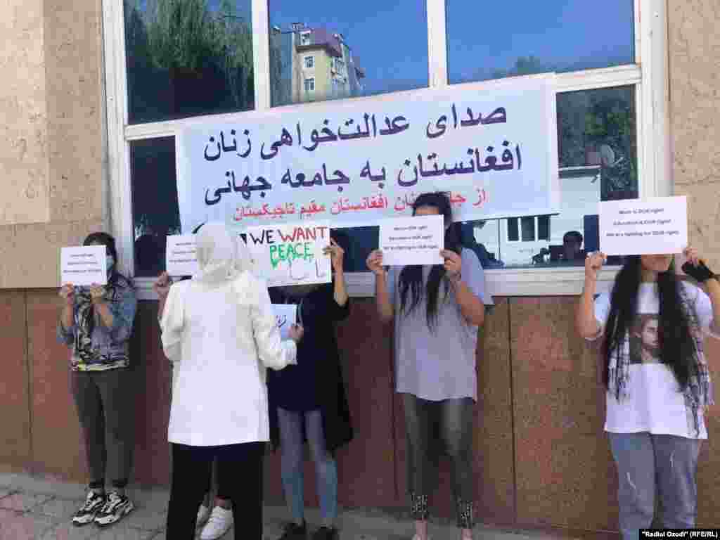 Субҳи 14-уми сентябр даҳҳо нафар аз занону духтарони афғони муқими Тоҷикистон дар Сафорати Афғонистон дар Душанбе ҷамъ омада, алайҳи Толибон ва Покистон шиор сар доданд.