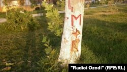 Кормандони шӯъбаи корҳои дохилии ноҳияи Фархор ҷавонҳоеро ҷустуҷӯ мекунанд, ки бо навиштаҳои ошиқона дар дарахтҳо ба Боғи фарҳанги ноҳия осеб расонидаанд.