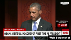 Барак Обама аз оғози фаъолияташ ба унвони раисиҷумҳури Амрико аз масҷидҳои зиёде дар хориҷ аз Иёлоти Муттаҳида дидан кардааст, аммо ин барои нахустин бор буд, ки ӯ ба як масҷид дар хоки Амрико рафт.